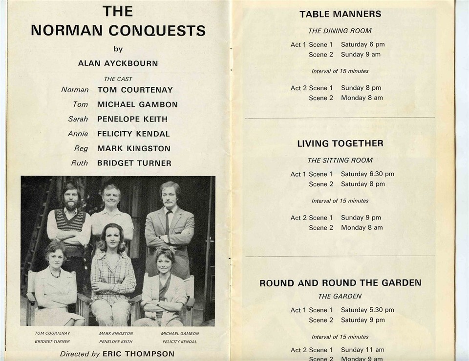 The Norman Conquests Program, by Alan Ayckbourn at the Globe Theatre in London, Starring Tom Courtenay