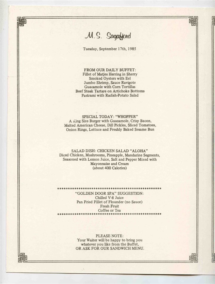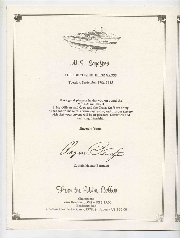 Set of 3 M S Sagafjord Cunard NAC Menus 1985 and similar items
