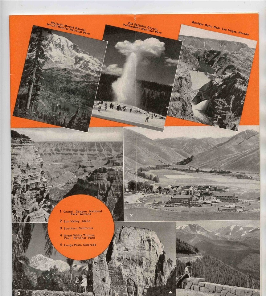 A 94 page Union Pacific Railroad booklet filled with photos, railroad information, cities along the rout photos and information, large route amp and much more. Dated 1941.