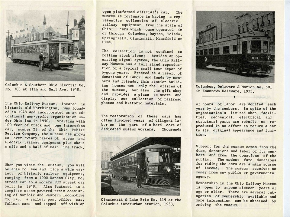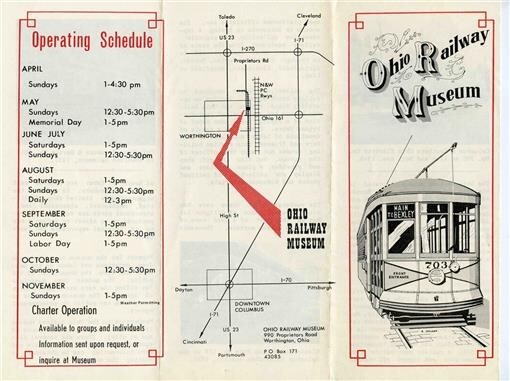 A well illustrated 6 panel fold out brochure with photos, history, map, schedule and more. Ohio Railway Museum Brochure . Located in Worthington Ohio