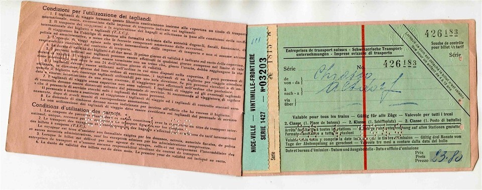 Chiari Sommariva Italian State Railways 1949 Ticket Booklet Punched Embossed