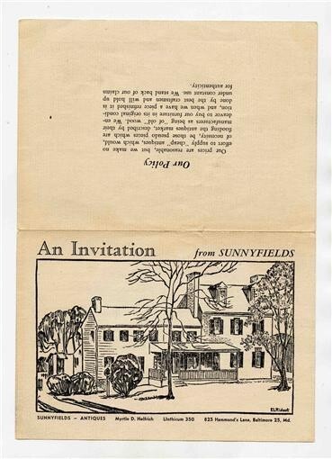 Sunnyfields Antiques Baltimore Maryland An Invitation Brochure E L Ridout Cover