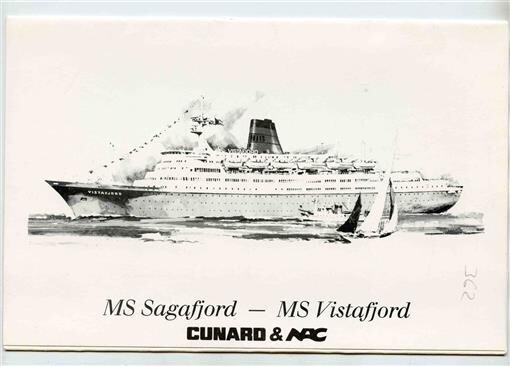 Cunard NAC Vistafjord Sagafjord Souvenir Photo in Folder 1980's