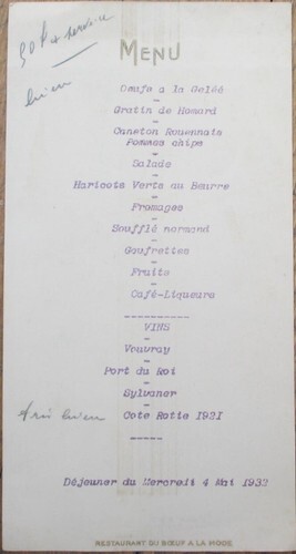 Sillie le Guillaume French Commune Restaurant Menu Card 1926 Laval