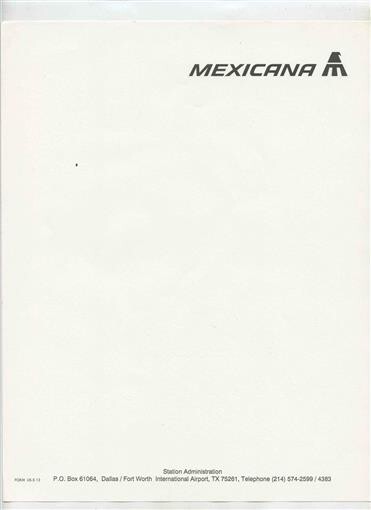 Mexicana Airlines Stationery DFW AirPort & and 50 similar items