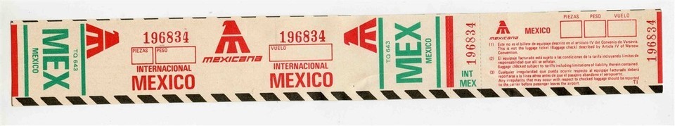 Mexicana Airlines Stationery DFW AirPort Baggage Tag