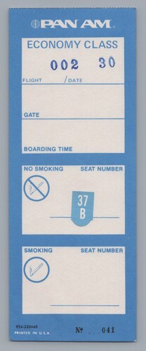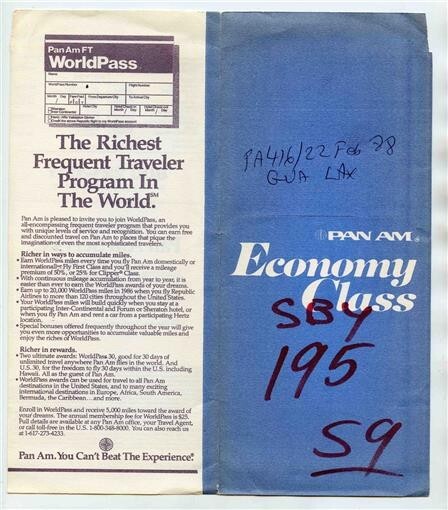 Pan American World Airways Economy Class Ticket Jacket Ticket Boarding Pass 1988