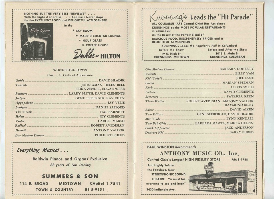 Wonderful Town Souvenir Program Paul Winston's Music Theatre 1957 Dayton Ohio