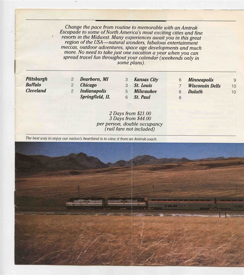 Amtrak Escapades Midwest Cities Brochure and 50 similar items