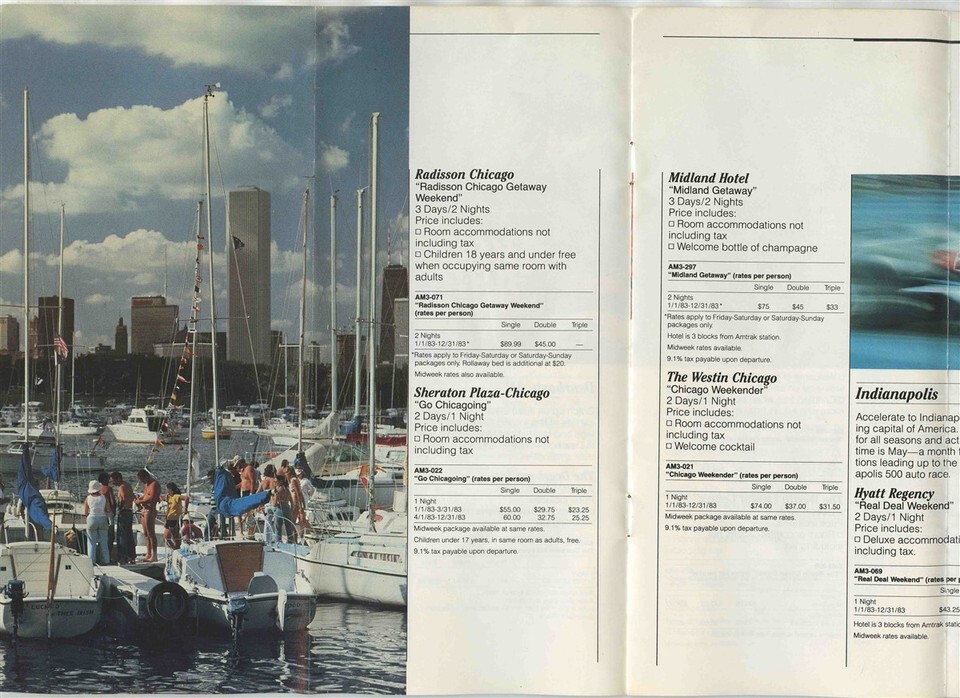 A 12 page full color brochure. Amtrak Escapades Midwest Brochure 1970's Hotels and Rates in major Midwest cities served by AMTRAK