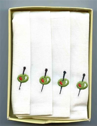 4 World Market Embroidered Cloth Olive on Pick Cocktail Napkins