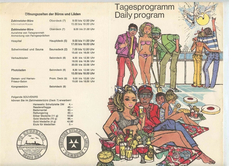 Deutsche Atlantik Linie TS Hanseatic Menu 2 Programs German Atlantic Line 1971