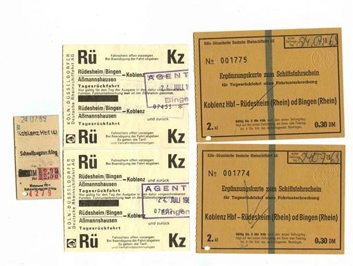 5 used Bingen Koblenz Asmannshausen Boat Tickets. 3 different kinds. From 1965