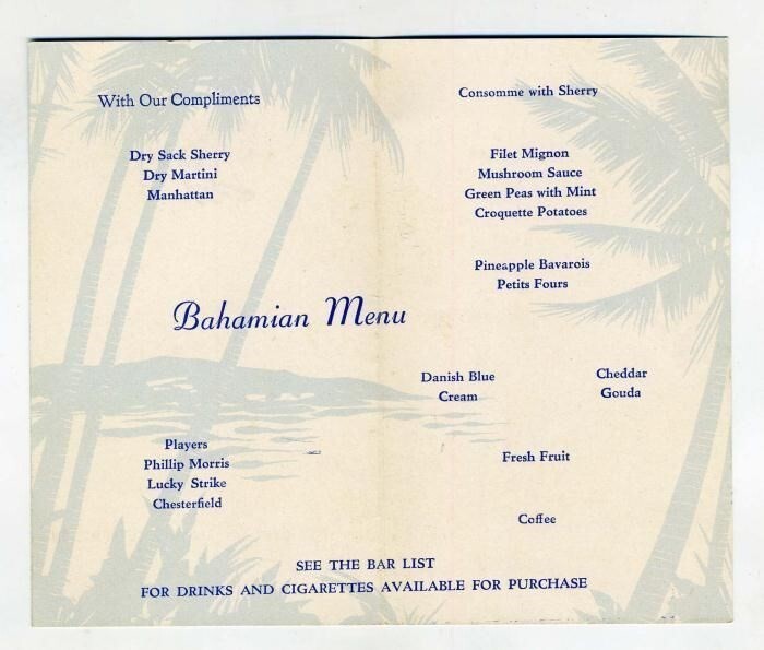 BOAC Menu The Bahamian British Overseas Airways 1950's