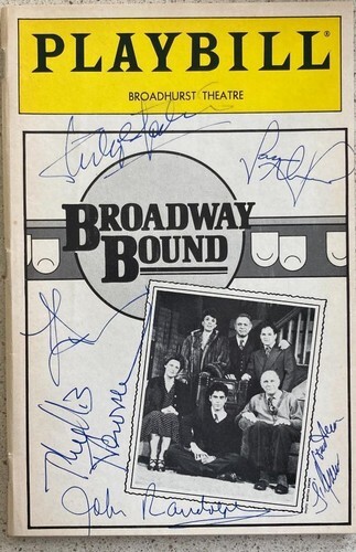 A Playbill for Neil Simon's Broadway Bound from a performance in 1987 at the Broadhurst Theatre in New York City. In fine condition. Starring Elizabeth Franz Evan Handler and Dick Latessa
