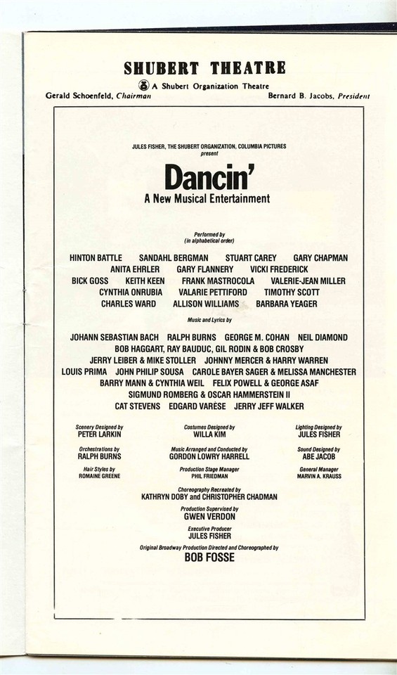 A Stagebill from the Shubert Theatre in Chicago for Dancin April 1979