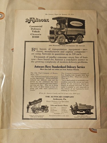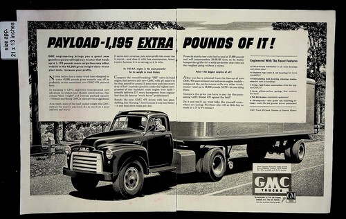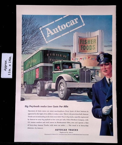 "An original ad from a 1950's magazine. The ad measures about 10 3/4"" x 13 1/2"" but due to the size limitations of my scanner only about 8 1/2"" x 12"" shows in the picture. Will ship in a tube by first class mail. An original magazine advertisement in excellent condition. " Autocar Trucks Big Payloads Make Low Costs Per Mile Magazine Ad