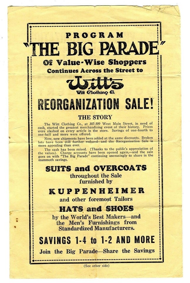 A 2 sided single page program from Metro Goldwyn Mayer resents King Vidor's Picturization of Laurence Stallings Stirring World Story THE BIG PARADE starring John Gilbert. This was one of the most successful Silent Films of all times. This has the musical score by William Axt which was added to the 1931 re release of the movie. In good condition, has edge wear and has been folded and has fold edge tears. This program was from Oklahoma City, Oklahoma.