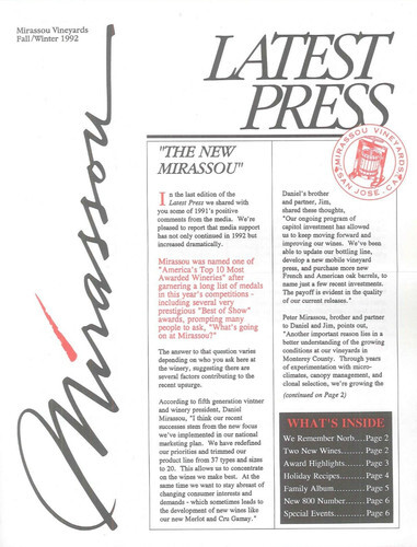 The Heritage of Mirassou Vineyards Advertising Postcard