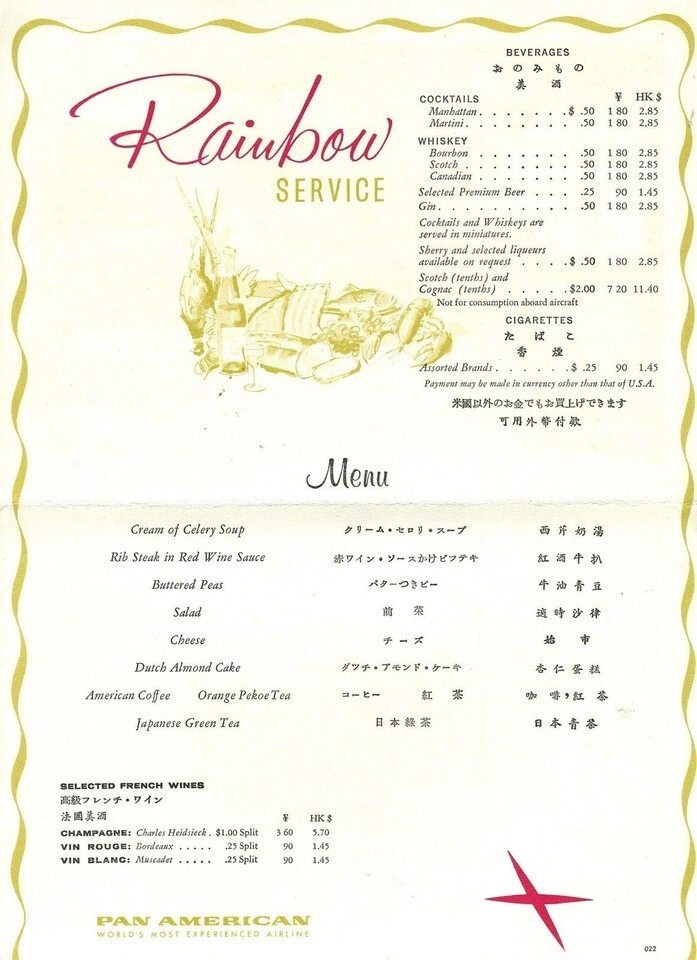 Pan American Rainbow Service Menu JAPAN and similar items