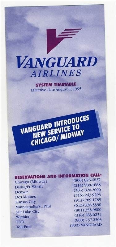A Vanguard Airlines System Timetable, effective August 1, 1995. In like new condition.