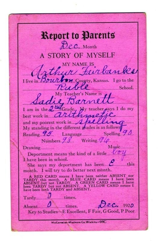 1920 Bourbon County Kansas Report to Parents Card A Story of Myself
