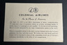 Canadian Colonial Airways' was founded in 1929 in Montreal Canada. In 1942, it reformed as Colonial Airlines which was later absorbed by Eastern Airlines