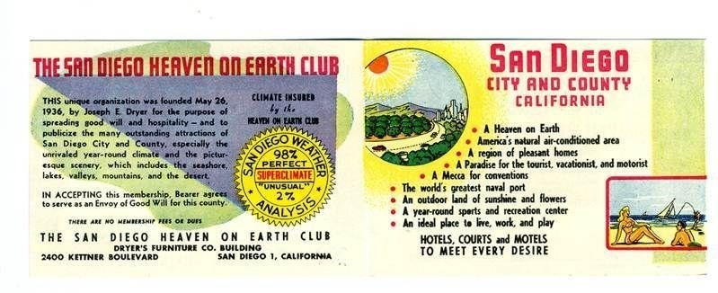 1930s San Diego California American Independence Bond Heaven on Earth Card