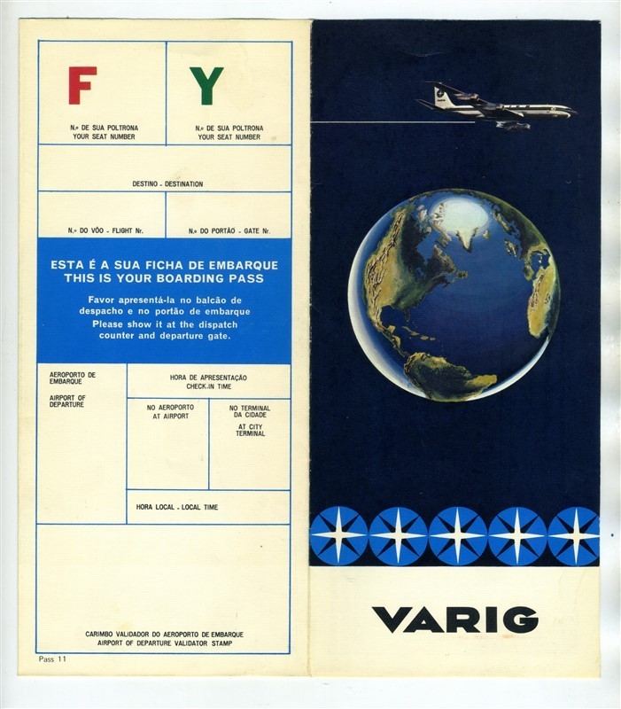 Varig Brazilian Airline Ticket Jacket Boarding Pass Viação Aérea RIo-Grandense