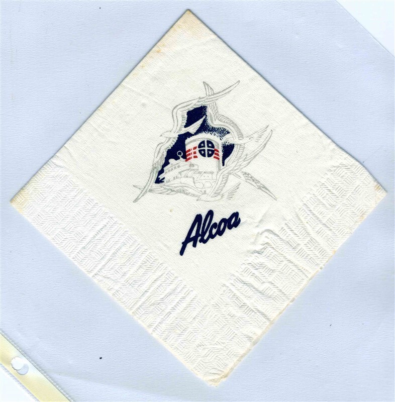 An Alcoa Steamship Companies Cocktail Napkin. Measures about 5" x 5". From A Caribbean Cruise in the 1950's.