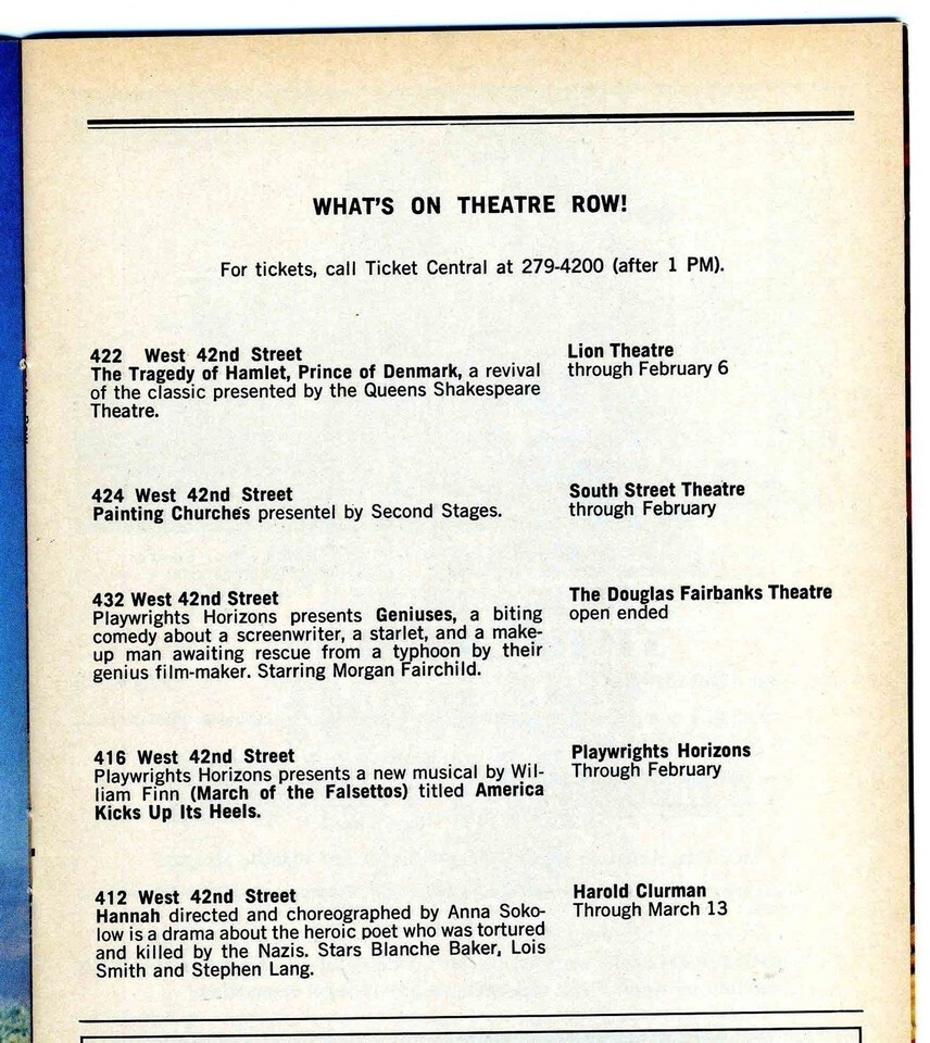 Stagebill 42nd Theatre Row 1982 Painting Churches Geniuses Hamlet and Hannah