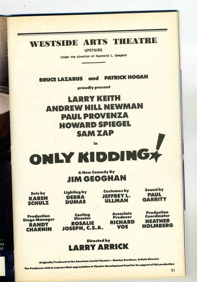 Playbill Only Kidding 1989 Larry Keith Paul Provenza Howard Spiegel Sam Zap