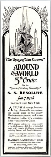 Measures about 2 1/2" in Diameter and is in near mint condition. A Baggage sticker from a 1930's cruise of the Hamburg American Lines ship S S Resolute on a World Cruise.