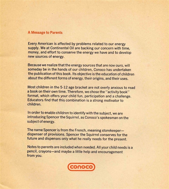 Conoco Energy Activity Book Puzzles Games Fun 1975 Spencer the Squirrel Cover