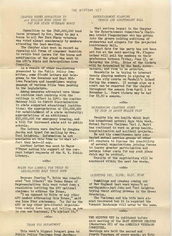 The Midtown Vet March 1947 Issue American Veterans Committee Manhattan Chapter