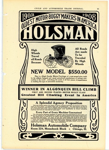 The Holsman Automobile Company was an early United States automobile manufacturer in Chicago, Illinois, between 1901 and 1910. Founded by Henry K. Holsman, the company produced a high wheeler automobile