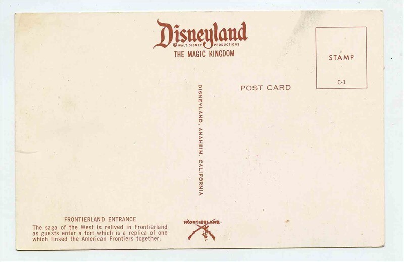 An unused Disneyland postcard. This is Frontierland Entrance , with C 1 in the stamp box. In Frontierland
