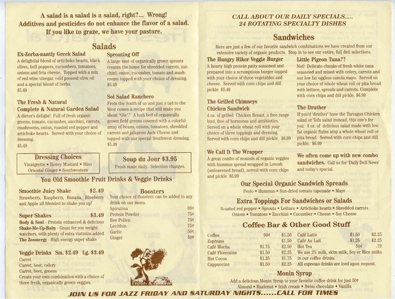 Fresh & Natural Menu River Road Gatlinburg Tennessee Harvest Deli & Cafe