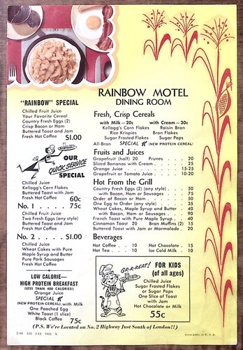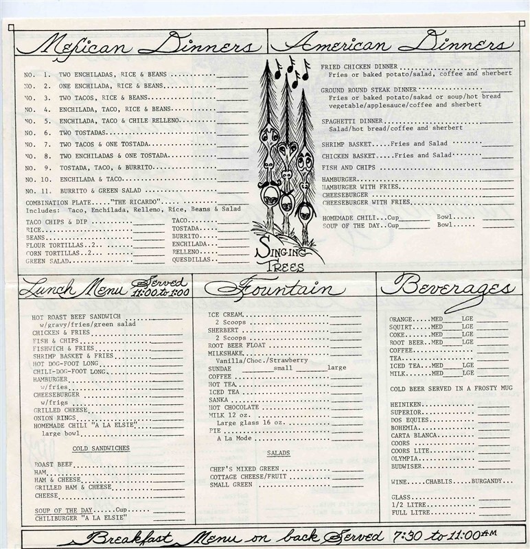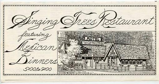 Singing Trees Restaurant Motel Menu Mexican and American Dinners