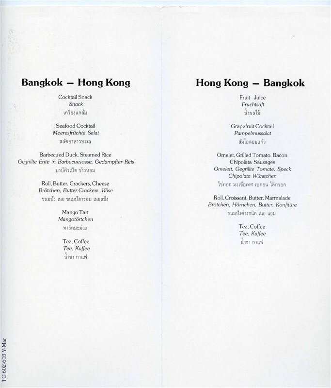 Thai Airlines In Flight Menu Hong Kong and 50 similar items