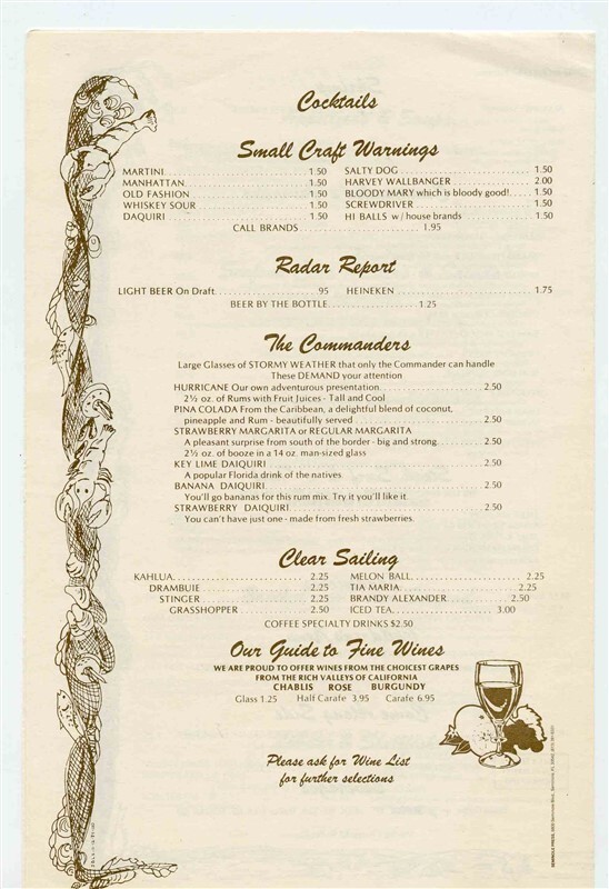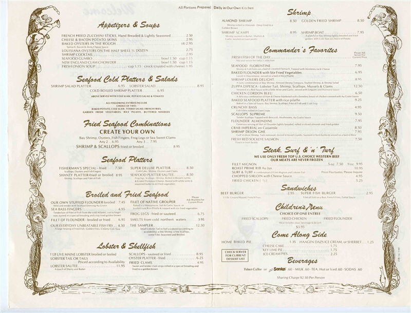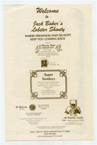 Jack Baker's Lobster Shanty Menu 119th St Bradenton Florida