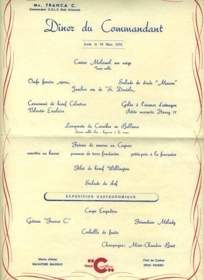 Linea C Diner Du Commandant Menu MN Franca C 1976