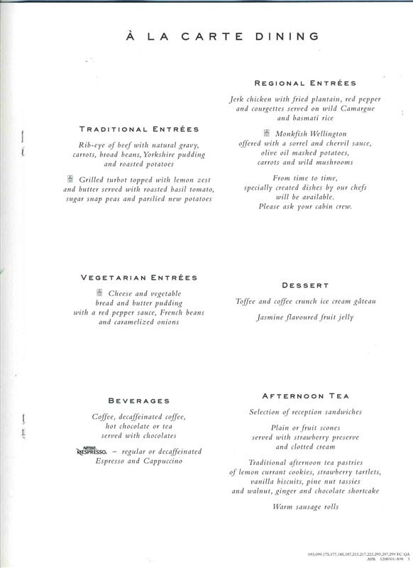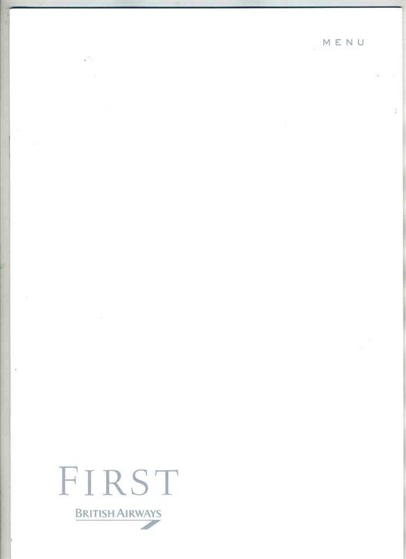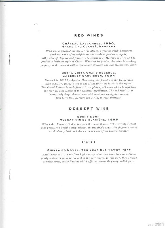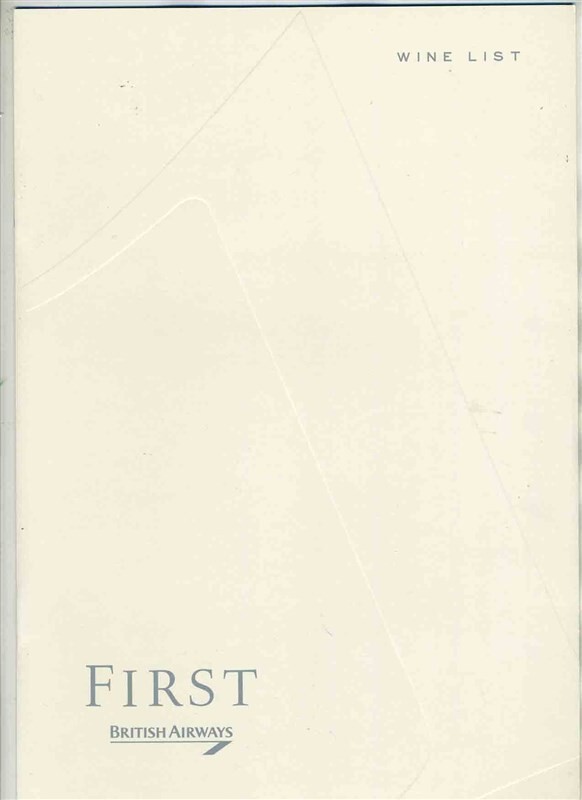 British Airways 1st Class A La Carte Dining Menu and Wine List April 1998