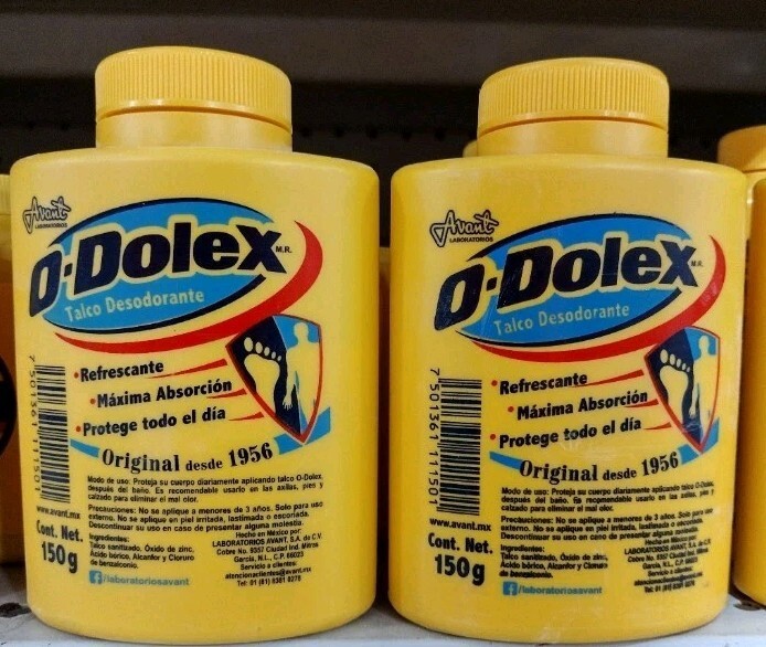 2 FRASCOS DE ODOLEX TALCO CORPORAL - 2 DE 150g ( 5.3 onzas ) CADA UNO - ENVIO GRATIS.