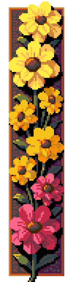 Tall bookmark with marigolds arranged vertically