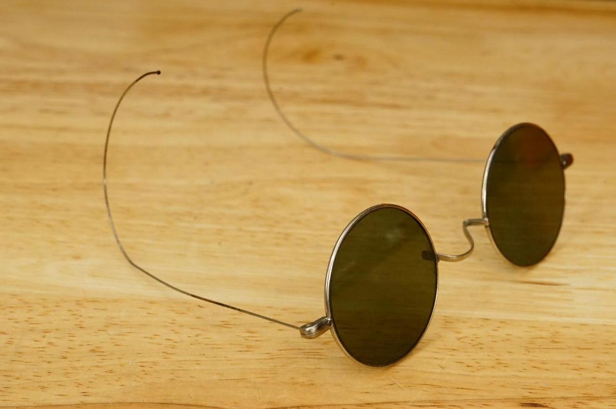 Vintage Metal Wire Rim Costume Eyeglasses Sunglasses SPA Brand Gray Green Tint. Measures 4.75" from hinge to hinge. The lenses measure 1-5/8" in diameter. No smoke or pet odors.