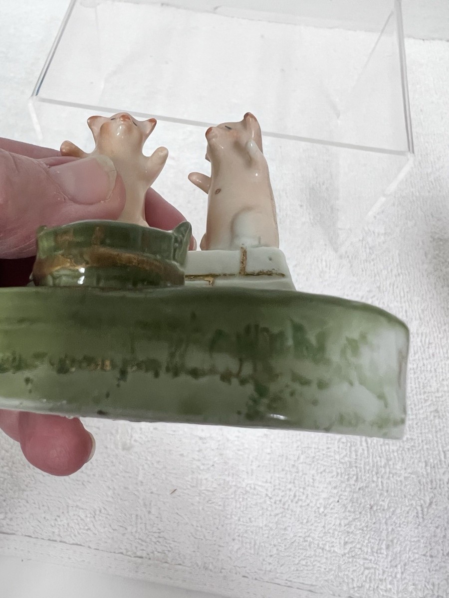 Antique German Pink Pigs Fairing Green Bucket White Wall Dish Toothpick Holder