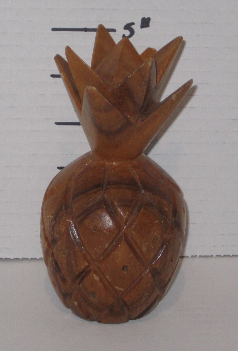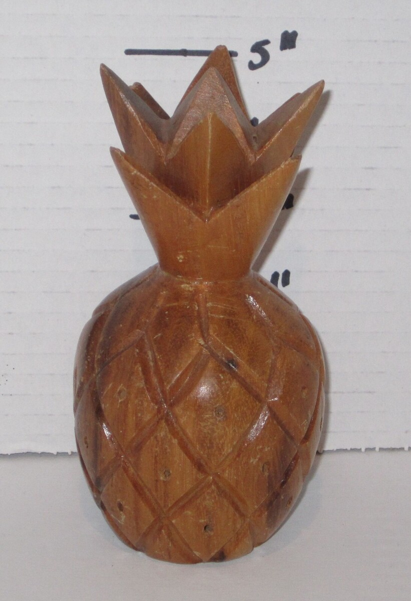 For Sale is a Vintage Hand Carved Monkey Pod Wood Pineapple Appetizer Toothpick Holder 5?. This vintage hand-carved wooden pineapple toothpick holder is a perfect addition to any Tiki or Mid-Century Modern inspired kitchen. The holder features a retro style and can hold over 30 toothpicks, making it perfect for entertaining guests. its in good used condition as seen in the pictures provided what you see is what you will receive. Please ask Any and All Questions prior to purchasing. Fast Same or Next day shipping with Free Delivery Confirmation within the U.S. Payment Due within 7 days of purchase (if you need more time please let us know In advance) we love to combine shipping is always a Yes and Most of the time Additional Items Ship for free.