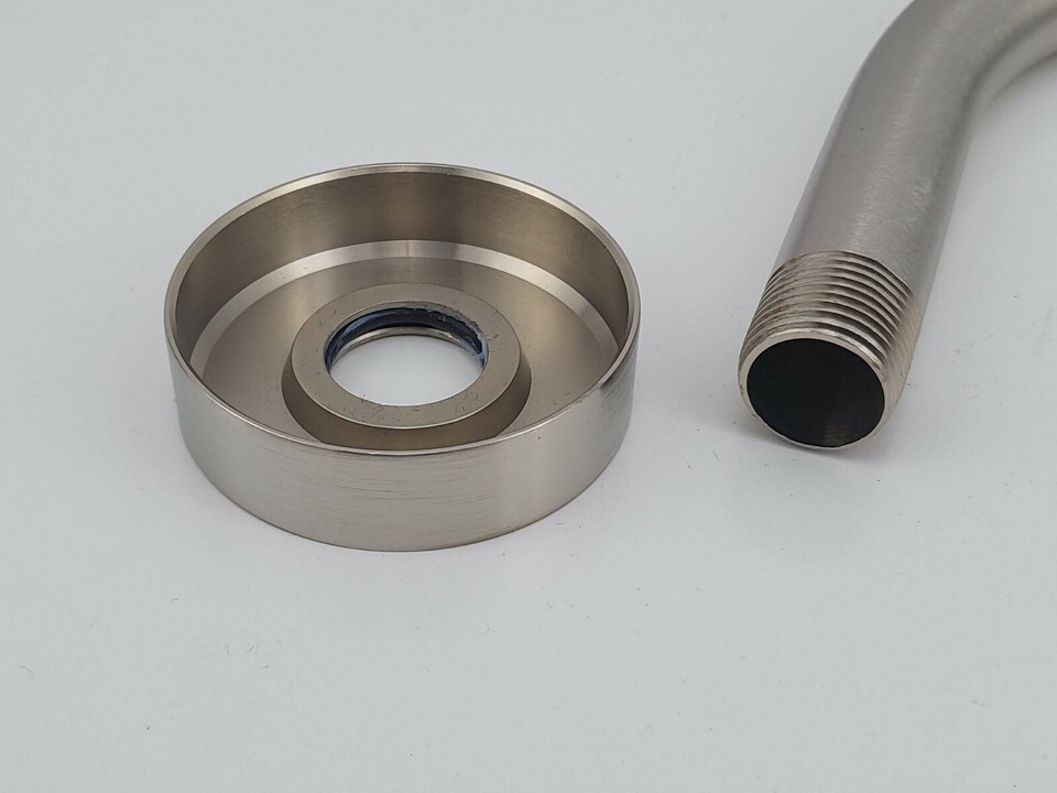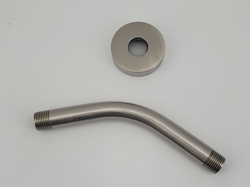 Helvex Shower Arm and Round Flange Satin Nickel Finish, Solid Brass UTR-012-SN
