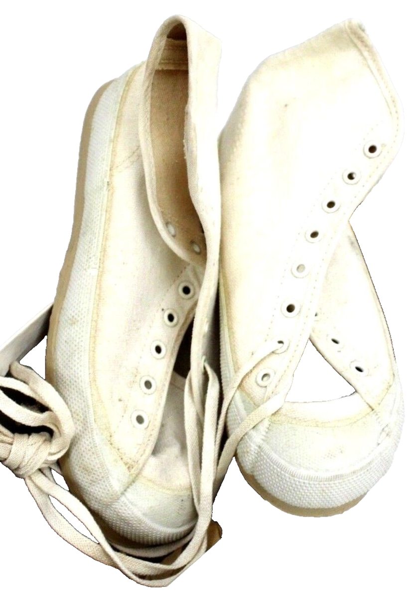 1 PR Vintage retro BALL BAND White HIGH TOP Sneakers NOS Girls Sz 12 1/2 1950s RARE- yes, these are RARE- are in as found in a Pennsylvania General store,Biglerville to be exact, as seen on AMERICAN PICKERS! They are musty from age and some light specks of rust but in good sturdy, pliable condition...The box is rough, marked misses size 12 1/2. The style is Atlanta.